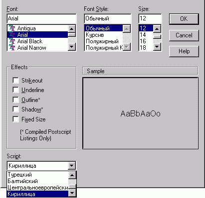 Данная операция приводит к тому, что Word 95, прочитав такой экспортированный русский текст, скорее всего не сможет его показать -- если только текст не набран шрифтами TMR, Arial, Courier New или Вашими, чьи Cyr-сечения Вы самостоятельно зарегистрировали в системе. Но это пока полбеды. Вторая ее половина в том, что и иные программы, вроде PageMaker-а, тоже не найдут в системе шрифтов с суффиксами Cyr. Придется либо прописывать многочисленные шрифтовые подстановки ("Шрифт Book Antiqua Cyr считать шрифтом Book Antiqua"), либо все-таки прописать в системе Cyr-сечения всех любимых шрифтов. Это сразу решит много проблем. К сожалению, сечения для каждого шрифта нужно прописывать отдельно, а общее количество таких записей ограничено.
