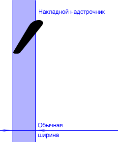 Способ реализации составного надстрочника, при котором под надстрочник выделяется отдельное знакоместо, его ширина устанавливается почти нулевой, а рисунок надстрочника смещается сильно влево за границы символа. Будучи вставлен в текст сразу за акцентируемой буквой, он появляется над ней и не раздвигает текст вокруг себя. Подробнее...